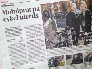 DN skriver om användandet av mobiltelefon på cykel, och om det ska begränsas i lag.